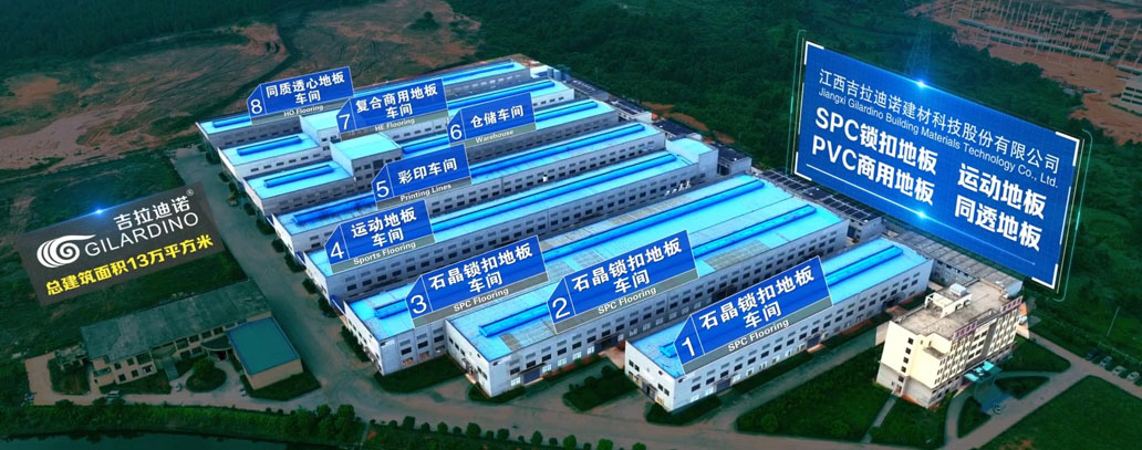 江西吉拉迪諾建材科技股份有限公司,占地面積近300畝,建筑面積13萬多平方米,總投資5億元,擁有20余條生產線,員工近300人?,F有SPC石晶地板生產線十條、德國豪邁開槽線兩條、大型商用卷材生產線四條、水墨彩印生產線兩條、同透地板生產線兩條,超大型運動地板生產線一條、是彈性地板行業產能量大,硬件實力強的生產廠商之一。